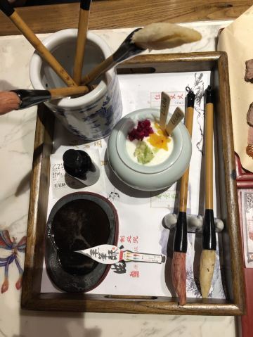 古藤幽兰冒雨来到长安大牌档的朝阳门店,因为实在太喜欢‘凤舞朝阳’这四个字,又不想排长队,果然如愿。进门后凑巧赶上了戏台演出秦腔,扮相俊美,不知道是不是真唱,戏台周围座无虚席,反正也不懂得欣赏,座位偏远一点儿也无所谓了。点单是件蛮头疼的事儿,人少饭量小,又不想浪费,真是不知道该怎么点,服务员也不催也不问,正好,慢慢选吧 。中途去厨房区转了转,果断放弃关中六碗,最后选了小菊花锅,想吃的大牌灌汤包竟然没有了,那就换成肉夹馍。两个人应该够吃了。抬头四望,这才发现周围空空了,哈哈 ,这是点了多久啊?肉夹馍,13块钱3个,迅速端上,真不大,看着蛮精致的样子,一吃,哇噻,香嫩无比,太好吃了,馍软硬适中,肉肥瘦正好,咬一口,鲜香酥软,非常满意。小菊花锅,略等了十来分钟吧,锅里面有洋白菜青菜腐竹香菇猪皮萝卜粉丝,另有蛋饺(3只)肉丸子(6)肉片(4)鲜虾(2),感觉食材真的很新鲜,口感鲜美,不油腻,吃到最后有点儿略咸,还好还好。不过,全程没看到菊花,可能是菊花汤?不管了。不知道算不算是正宗陕西菜关中菜味道,不过确实蛮好吃,菜量虽不是很大,饭量小的刚刚好,就餐环境及卫生都很好,餐巾纸三块一包,卫生间需要出门乘电梯上二楼。整体算是非常满意的一次美食体验。