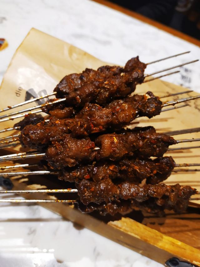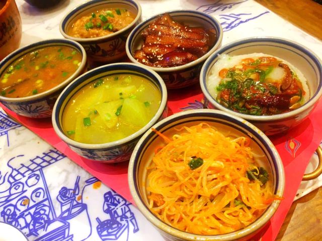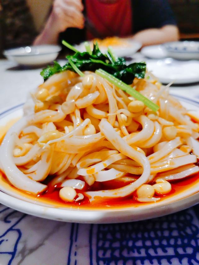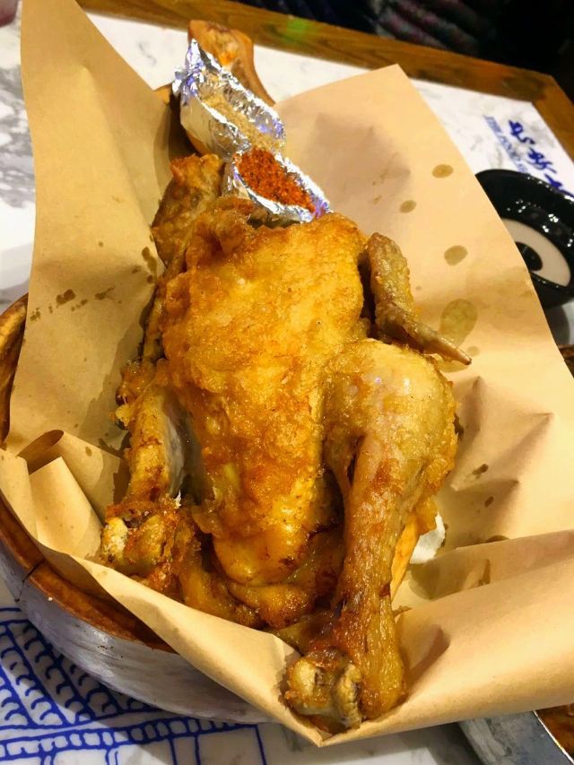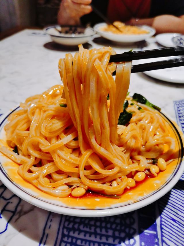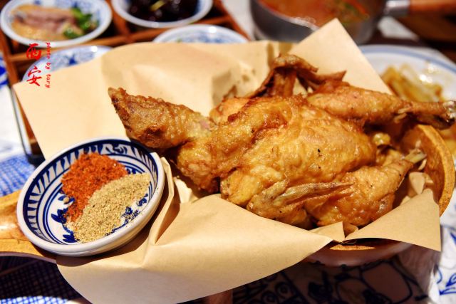 顺时针1986作为十三朝古都的西安,是陕菜的代表城市和发源地,陕菜既有精雅的高档菜,又有普通的中低档菜。来西安吃陕菜的特色店就是长安大牌档。在西安市内有几个分店,我每次每次都是去的长安大牌档(凤舞朝阳店)。 这家门店位于益田假日世界购物中心西侧,门面复古,黑底金字店招,整体环境非常古典优雅,而且挨着古城墙、钟楼很近。他家的陕菜真的太丰富了,推荐下:葫芦鸡、豆皮涮牛肚锅、冰草酸奶沙拉、烤筋、面皮捞牛肉、毛笔酥、麻将十三幺、民间烤枣馍、关中六小碗、油泼辣子鱼、一口香臊子面、桂花绿豆凉糕等。 其中最具代表性的就是葫芦鸡,始于唐代,做工复杂,分清煮、笼蒸、油炸三道工序,保存鸡的完整性,呈金黄色,皮酥肉嫩,香烂味醇,沾点辣椒面更有味道。 酱烧大龙骨 食肉者必点。酱烧大龙骨一端上来就阵阵飘香,不得不说酱汁已经完全渗入肉里面,味道浓郁,肉块软烂适口。 豆皮涮牛肚,酱香浓郁味道有点微辣,牛肚爽脆有嚼劲,搭配麻酱简直是绝配。豆皮很薄,尽管蘸满了麻酱也阻挡不了豆皮本身的香味。 蜂蜜绿豆凉糕,上面一层绿豆稠沙,再撒上芝麻花生,底下是软糯可口的糯米。蜂蜜的甜已经完全和绿豆稠沙融合在一起,口感可谓之丰富。