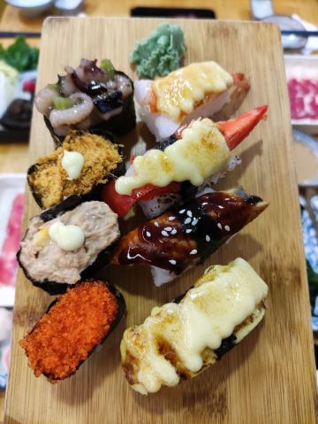 日式寿喜烧,雪花肥牛,寿喜锅,刺身拼盘,焦糖布丁,寿司拼盘,上脑,冰淇淋,日式魔鬼辣,大福,寿喜烧,鸳鸯锅,雪花牛肉,抹茶大幅,鸡蛋,牛舌