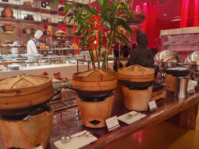 龙虾,三文鱼,阿根廷红虾,冰激凌,提拉米苏,虾饺,黑蒜烤生蚝,拿破仑蛋糕,牛仔骨,榴莲酥,脆皮乳鸽皇,桥底避风塘珍宝蟹,琥珀猪肋菠萝沙拉,农家土鸡煨鲍鱼,椰皇羊肚菌花胶汤,鲜沙姜薄荷猪手,拆烩鱼蓉麻食羹,浓汁菌菇养颜豆腐,青花椒玉液浸海斑,岭南文火小牛肉