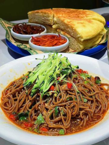 熬夜选手-西安旅游太好逛了|这家陕菜不愧是人气榜第一 来西安旅游,地标景点当然是钟楼,还有鼓楼 大雁塔 大唐不夜城等都是必打卡的景点。 离景点都很近的奔跑吧陕菜,环境古香古色代表着西安的悠久文化底韵。 民乐园万达广场五楼的奔跑吧陕菜,卡座包间都非常舒服,菜品丰富口味更上一层。 油泼辣子鱼,肥美无刺的江团,厚切的大片,鲜美入味,秦椒香味扑鼻,辣味醇厚香而不燥,越吃越香,配菜也很丰富,可以多下两碗饭! 豆皮牛肚,麻酱味超浓郁,大块的牛肚软烂有嚼劲,搭配着豆皮吃太满足了! 蓝田饸络 葱油饼 肉夹馍陕西风味小吃,都非常不错有特色,每次必点。 店里服务好热情周到,上菜很快吃得爽,让人满意!