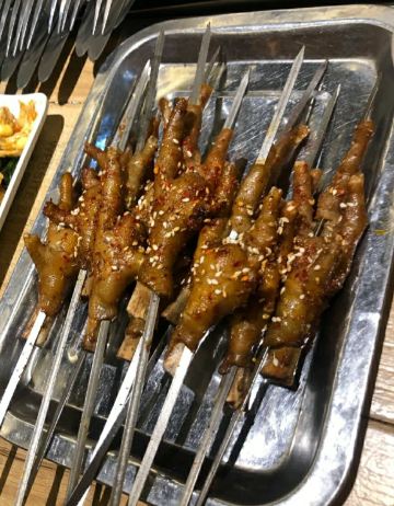二道木烤羊腿,下午五点开始营业,想吃烤羊腿,烤羊排一定要提前打电话预约 他家✨[烤羊肉]、✨[原味烤羊肉]都是本店必点菜单,可惜这次来晚点完了[笑哭] 再推荐他家几个新菜: ✨[秘制烤豆腐]不像豆腐又似鱼豆腐,味道独特 ✨[烤鸡爪]像是卤过再烤,入味而且入口即化[调皮] ✨[凉拌鱼皮]入口清爽,浓浓的泡椒味,很爽 他家好吃的实在太多了,需要大家自己去品尝啦 他家电子城,凤城六路,桃花潭都有分店