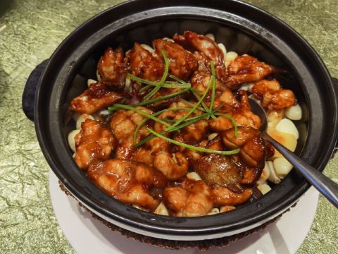 榴莲酥,干炒牛河,煲仔饭,浓汤煮罗定鱼腐,三文鱼,砂锅鱼头,台湾卤肉,椰皇葛仙米煮官燕,叉烧,虾粥