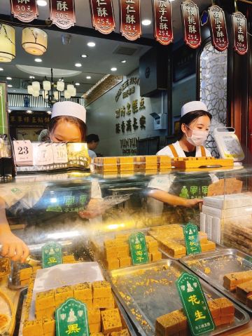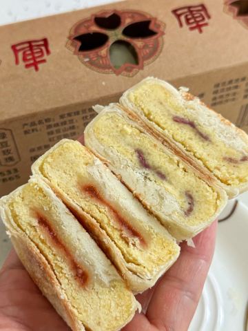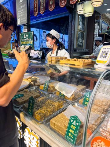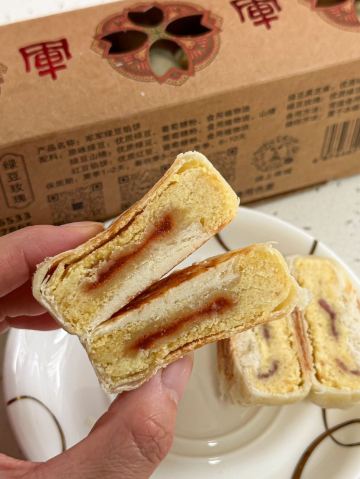 每次逛回民街都必来军军绿豆糕店 绿豆馅饼是他家的特色 外皮薄薄的又很酥脆 有原味、山楂、黑芝麻、红豆、玫瑰等5种口味的馅 每一个吃起来都有不同的味道,很好吃的 任选哪种口味都是不会踩雷哒 他家的绿豆糕低糖,吃起来软糯又可口 真是走亲访友的最佳选择🥳