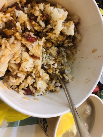 #腊肠牛肉牛油拌饭【双重快乐】#拌一拌吃得好满足,牛油拌饭好香,里面内容丰富分量足。#牛丸汤#好好喝,清甜浓郁。#『满油』咸蛋黄一整颗# #小太阳荷包蛋# #手打牛筋丸一颗(3颗)#出餐送货都很快,鸡蛋牛丸都很好吃。