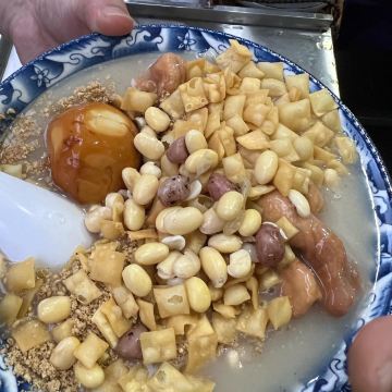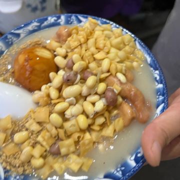 油茶麻花 这里的特色,基本上只是油茶麻花,只是套餐形式和搭配不一样,味道确实不错,油茶很香,微微咸口 经典套餐 大碗的,大份油茶两根麻花,一个溏心蛋 小经典套餐 小份的油茶,一根麻花 [薄荷]环境: 就是街边,来吃味道就不追求环境 [服务铃]服务: 买完自己端