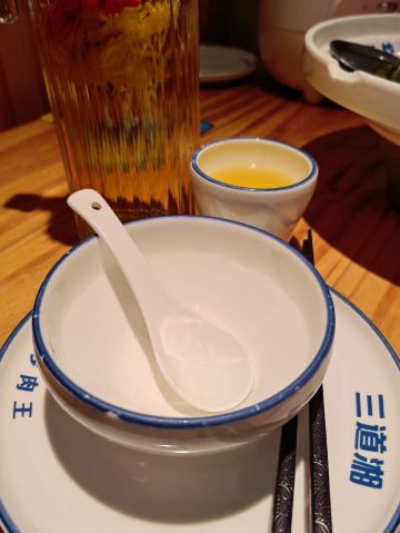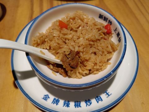 水漫三楼在湖北襄阳的地界上,居然吃了一餐湖南湘味。民发广场四楼,各种美食大荟萃,琳琅满目挑花眼,最后选了三道湘,也是店门口大姐招呼得紧呀。店里几乎坐满,环境还不错,干净整洁,扫码点单,很快被招牌推荐击中。金牌的辣椒炒肉,必中,招牌的肉汁拌饭,感人,擂辣椒茄子皮蛋,最喜皮蛋。凉菜皮蛋先上,服务员帮忙擂好,辣椒炒肉也是迅速上桌,不愧是金牌,然后又上来一电饭煲,难道是给辣椒炒肉下饭的?过了好一阵,又端来一盆汤水样的,还以为是上错菜了,一问才知道是肉汁,服务员又过来打开电饭煲,把一盆肉汁全部缴了进去,再耐心拌好。擂辣椒皮蛋不是很辣,可以开胃,辣椒炒肉果然美味下饭,肉汁拌饭确实不负人,果断下勺动筷子。湖南菜在湖北也是有市场的。