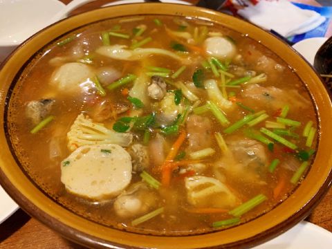 几乎每一道菜都不会踩雷,闭着眼睛点吧,当然最值得推荐的就是这碗杂烩酸辣汤,福建的酸辣汤和北京有很大不同,没有那么重的胡椒味道,而且是放的配料非常多,鱼杂、鱼丸、肉燕、海蛎、菜花、小芹菜搭配的正合适,推荐