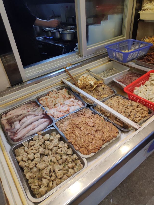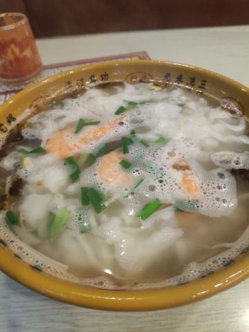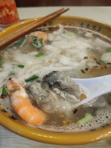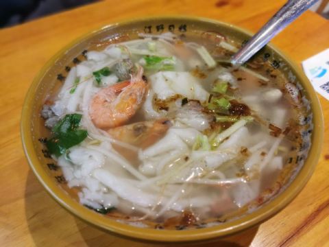 刚到霞浦时被好几个当地人推荐来此用餐,看来口碑不错。那天已经晚上八点了,还是有些人在用餐,我就点了份锅边。店里环境还可以,有个敞开的大冰柜里好多配料。小店主要做各种当地特色的面、粉、汤。锅边很快上来了,感觉就是我在福州时吃的鼎边糊嘛,面粉糊下到水里变成面片。不过这里的物价感人,一碗里放了好多颗虾和牡蛎,才十元!味道鲜美!