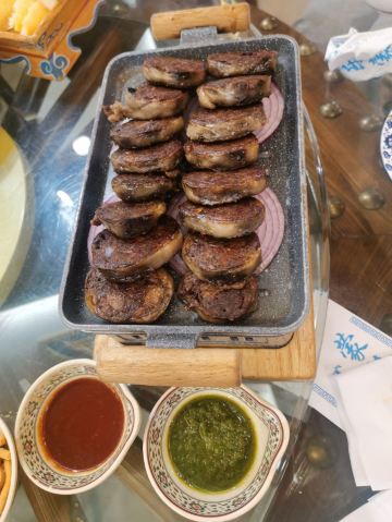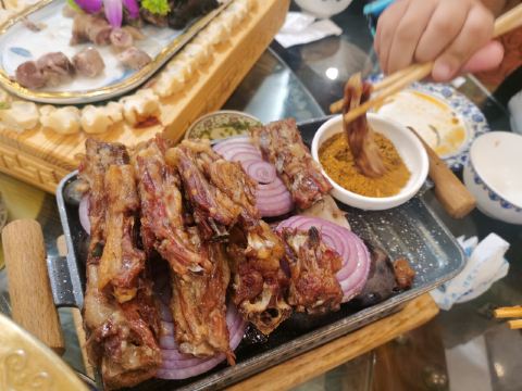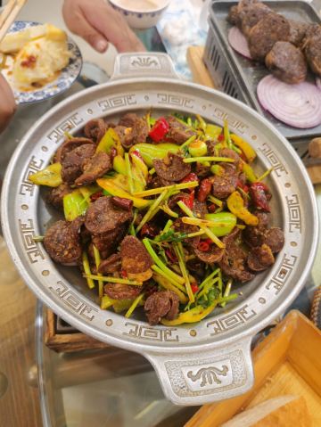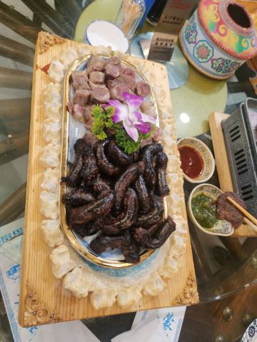 血肠,白皮小肉饼,羊排,手把肉,烤牛肚,酥米奶嚼口,锅包肉,奶茶,石头烤牛排,凉拌莜面,凉拌丝瓜尖,小肉饼,小锅茶,蜜汁奶豆腐,手扒牛排