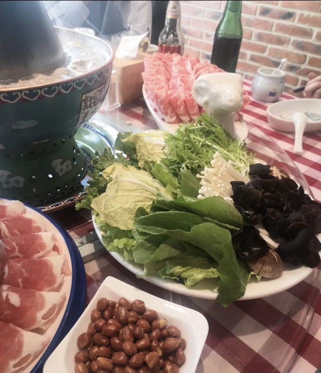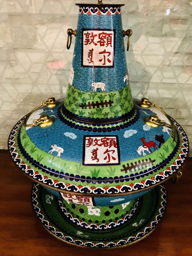 我是在住宿地看到这漂亮的具有浓郁民族特色的景泰蓝火锅所吸引而动的。但不一样的特色美食,特别是在冬日里一品是极爽的。独立分餐燃气炉涮锅涮。来自锡盟草原地道的牛羊肉和多元涮料。有机会一定来这个“宝地”涮肉哦……