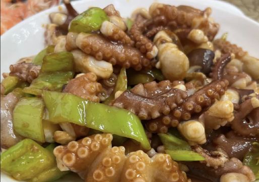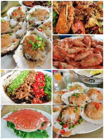 酱爆八爪鱼,海鲶鱼炖豆腐,香辣蟹,鲅鱼馅饺子,八爪鱼,基围虾,螃蟹,辣炒皮皮虾,黑蒜烤生蚝,蒜蓉扇贝,清蒸海螺,香辣花盖蟹
