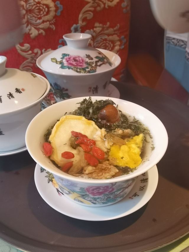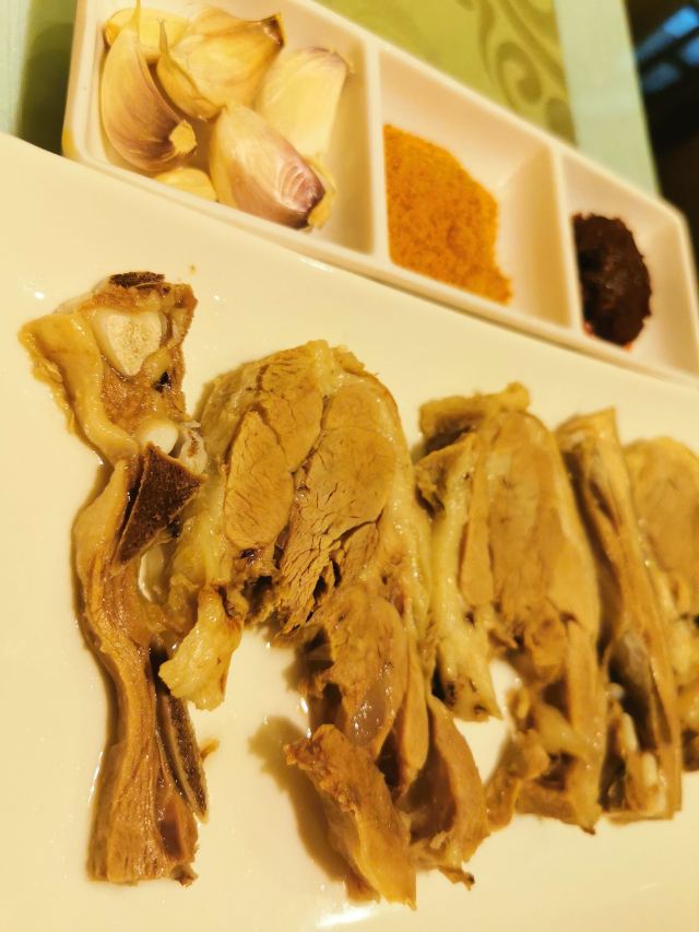 Haylie西宁是我们大西北之行的第一站,在下榻的酒店附近找吃的,搜到了这家评分很高的,于是就是试试,看来还是挺受欢迎的,要等位。我们抵达的第一天来吃过之后,离开那天继续来这,出品确实不错 餐厅有两层,差不多都是包间,每个包间都有一个布门帘,可以不让来往的人打扰用餐。 八宝盖碗茶:15块一位,里面材料很多,有雪梨干、菠萝干、龙眼干等,挺好喝的。如果不点茶也可以,餐厅会提供热水 牦牛酸奶:我们两次来都点了,确实很好吃,表层有一层浓郁的奶酪,很香,酸奶也很滑,价格也不贵。 手抓羊肉:之前在银川吃过很好吃的手抓羊肉,西宁的也不错,配有干粉和酱料蘸着吃,羊肉也很香 秘制牛大骨:我们点了小份,一共四大块牛骨,骨头有带牛筋和牛肉,加上特制的酱汁,很入味,很好吃 土火锅:里面材料很多,有牛肉、肉丸、粉条、豆腐、腐皮、娃娃菜、鹌鹑蛋等,满满一锅,很实在