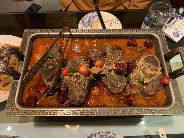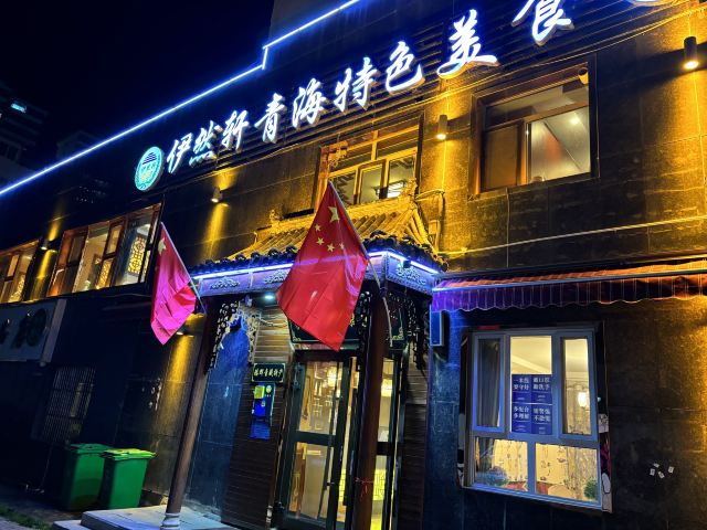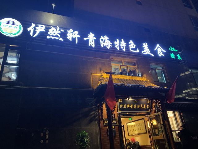是小孟呀2019/8/28 今天一早上出发去逛了青海湖~~然后下午又去了塔尔寺,大约晚上5.6点驱车慢慢赶回了西宁市区~~ 从哪里开始就从哪里结束,最后还是回到了出发的地方,包车小哥把我们送回了宾馆,问他说晚上要不要一起吃个饭 他说想家了~~就直接回去了,约好明天再过来一早送我们回机场!! 这也是在大西北最后一顿清真菜了~在宾馆休息的时候搜了一下看但这家店排名第一,就决定过来尝试一下~~没想到还有取号,果然生意好!! 大约半个小时我们就进去了这家店的环境依旧是清真的风格~~没有小桌,都是一个个的小包间!我和我姐2个人就随便挑了一个靠窗的房间,膈音还是不错滴! 点了几个特色的菜 |伊然轩秘制牛大骨(小)^一份有4块骨头,上桌的时候很香,底下有火在持续加热,所以越烧越香,而且一点膻味都没有!这就是散养和圈养的差别了!!好吃 |八宝盖碗茶^服务员给我推荐了这个八宝茶~~说比较养生,旁边有热水壶,水喝完了可以自己再倒,很方便!而且我这个茶是越喝越甜!!感觉很神奇的感觉,最后茶里的食材也可以吃点!绝对养生 |牦牛酸奶^最后我和你我姐各要了一碗酸奶,也许这次喝一次,以后就不知道有没有机会再喝到这么好吃的酸奶了!! 这一顿吃完~这次的大西北之旅就算是要结束了。也让我更加期待下次旅程的开始~