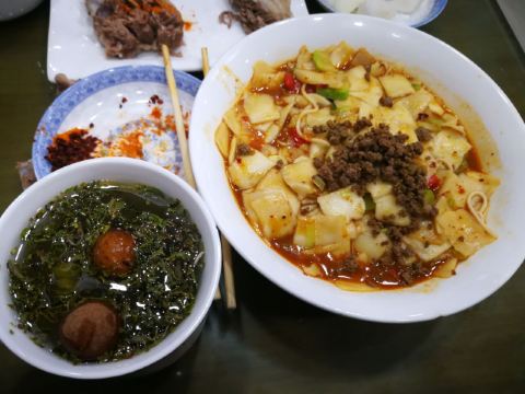 第二次来吃了,海东这家路边上的手抓肉店,非常正宗非常好吃的手抓肉,炒面片配手抓肉,很赞!免费赠送盖碗茶,小菜和瓜子,感觉好幸福!