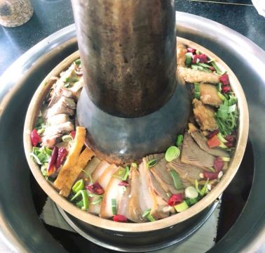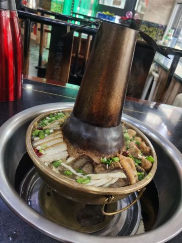 青海风味的老字号火锅店,环境简陋,但是人气超火。土火锅采用烧炭火的铜制火锅,酸菜、粉条、带鱼、肉丸、腊肉、菌菇、豆腐等各种食材在羊汤里翻滚,荤素搭配,香辣爽口,份量十足。