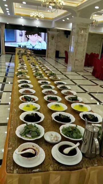 麻香荞面,醋辣海蜇头,银耳莲子汤,酱香牛肉,铁板粉丝,醋泡双生,大米,香菜炒粉皮,香拌苦菊,鸡肉焖卷子,香卤千叶豆腐,长城大拌菜