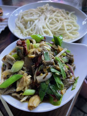位于那拉提景区门口不远处的美食街上,这家招牌还是挺显眼的,吃饭的人也挺多。看着不错,就尝试了一下,清炖羊肉挺嫩的,肉分量很足,味道不错。比较惊艳的是野蘑菇拌面,面条可以免费续,而且很劲道,不会糊,浇上爆炒的野蘑菇,很滑溜的口感,蘑菇鲜美,让吃了好几天牛羊肉的我们,着实改善了一下。服务超热情,老板也客气。