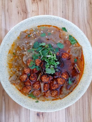 先看招牌 始于1902年 非物质文化遗产 是不是已经够劲道了 这可是我放弃酒店早餐特地过来的打卡之地 必须拥有姓名 小店还挺干净 一堵墙上徐州人就好这一口几个大字弹眼落睛的存在着 另一边一墙的照片述说着老字号的故事 满满一大碗 烫的很 看着就是真材实料 不过 可是 我不是徐州人 油炸丸子+绿豆粉皮的组合真的不是我所爱 不说不好吃 只是吃不惯 仅此而已 但是老字号依旧推荐尝试 毕竟口味这东西太个人 谁说不是呢