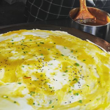 两个鸡蛋 这路的鸡蛋其实就一种,只是各种食材看需要加什么。我觉得鸡蛋饼两个鸡蛋是标配,现在好像也只做两个鸡蛋的土豆丝 里面加土豆丝不错,味道很香肉肠 是这种比较大的肠,个人觉得还可以里脊肉 鸡蛋和里脊是鸡蛋饼里的精髓香肠 这个就是广东的腊肠 环境: 在一个小区里 服务: 很好