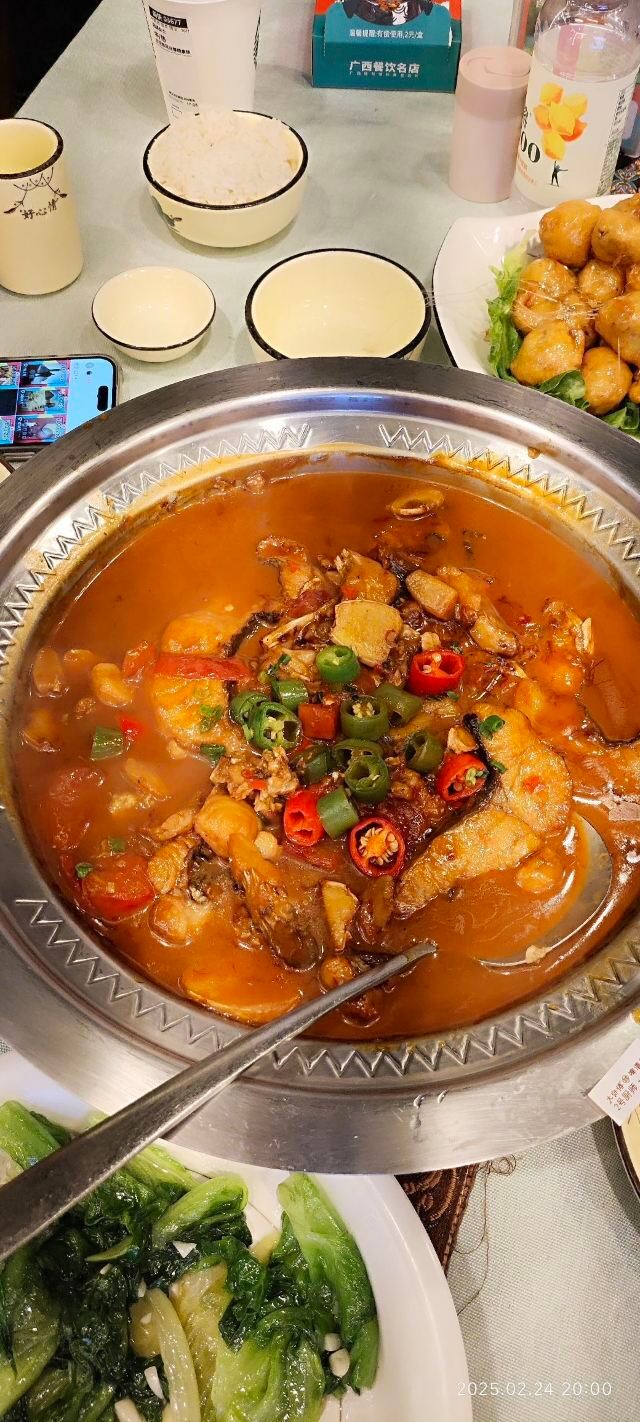 嫒自己一句桂林山水甲天下,我便真的来到了桂林阳朔,朦胧细雨的一天,带着家人来阳朔玩,逛了十里画廊,做了竹筏,逛了西街~ 看到这家大师傅啤酒鱼,门口外面有热气腾腾的姜茶甜酒汤圆吸引着我们,还有门口的大姐也很热情的接待,天气有点冷,安排一个暖和的位置,这里的服务也非常热情周到,贴心,服务员都很主动的帮我们打自助的姜茶汤圆,天气冷喝点姜茶很暖身~ 打开菜单点了他们家的特色啤酒鱼,还有各种特色的菜品,味道意想不到的好吃,啤酒鱼有淡淡的啤酒香味放了番茄配着煮,更美味了,一下子干了两碗饭~味道棒棒的~田螺酿也是阳朔的特色菜,服务员说有螺肉和猪肉剁碎,还有薄荷,是去腥味的一起塞回去的~味道也是棒棒的~家人也称赞第一次吃到那么好吃的菜~值得推荐