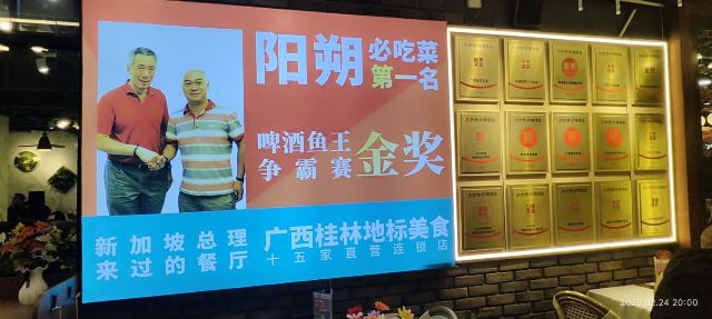 YoYo_3W8F3C0E想必来到阳朔少不了吃啤酒鱼吧,哈哈哈哈😄,走在街道的每个角落都有不同品牌的啤酒鱼,真的是一座满大街的都是啤酒鱼的城市,看到最多的是这个品牌大师傅啤酒鱼,晚上出来逛西街准备尝一下他们这边的啤酒鱼是一个什么味道👅,骑着小电驴,看到这家大师傅啤酒鱼桂花店门口喊客的阿姨很热情,电动车可以停在店门口很好,主打一个热情,进店挑选了一条招牌特色啤酒鱼,肉质细嫩,还点了一份啤酒鸭,两个人吃不了多少,然后服务员就给我点了半份,还点了一份特色小吃,艾叶粑粑,加一瓶他们这边的漓泉1998,菜品味道真的很好吃的,份量是真的很足 【口味】啤酒鱼很好吃,那个汤汁是很下饭的,啤酒鸭的肉质也很香 【环境】有3层楼,灯光效果很漂亮 【服务】服务员都很热情,还有餐前小吃,甜酒汤圆和桂花姜茶都会主动送上来 总之这家餐厅是可以放心体验的