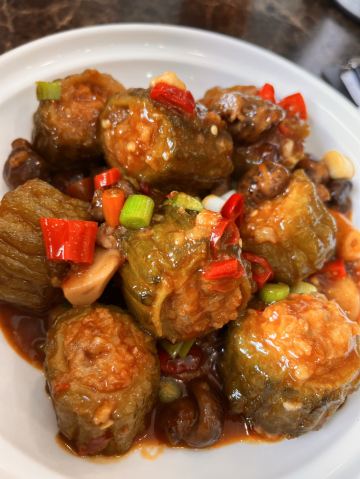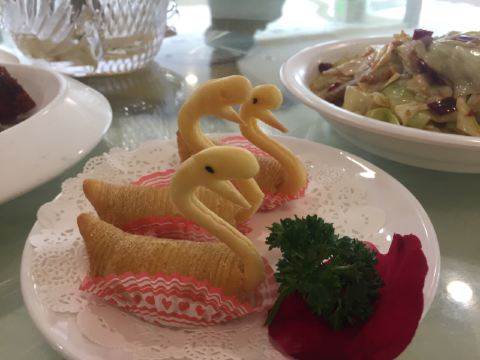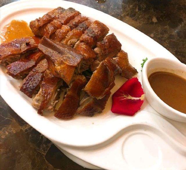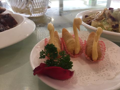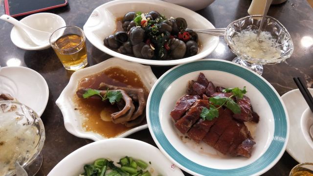 桂林非常有名的烧鹅连锁店,这家是椿记在阳朔开的分店。烧鹅是椿记的招牌菜,用的是桂林本地的鹅,做出来皮酥肉嫩,口味没有港式烧鹅那么油腻。除了烧鹅,流沙包、啤酒毛骨鱼、酱爆鹅肝等菜肴口味也不错。
