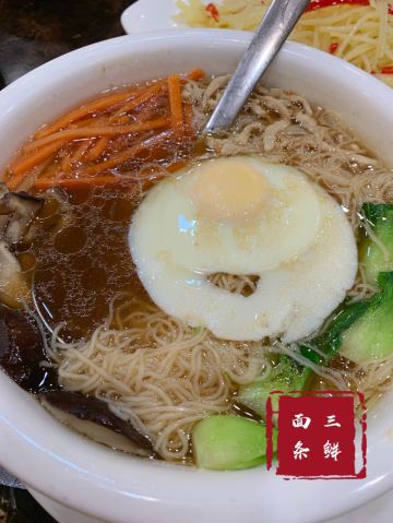 Chun Ji Company这是在这次旅行中吃的最满意(超级饱)的一顿了😘😘必须推荐❗️他们家菜很多,随意点都不会踩雷哦🥳 点单攻略‼️ ✅椿记烧鹅🌟🌟🌟🌟🌟 两个人点了小份💰这是他们家必点的一道招牌菜,味道也很不错,鸭肉不腻也不柴,搭配他们家独特的酱汁,超级好吃😋 ✅大千鸭翅🌟🌟🌟🌟🌟➕ 这个真的强烈推荐,我们点的中辣,非常入味😋可以按个数点,💰9元一只 ✅椿记榴莲酥🌟🌟🌟🌟🌟 形状是一只🦢,造型独特,肚子里有榴莲的馅儿,榴莲的味道不会很浓,我这个不怎么吃榴莲的人也能接受 ❎酸辣土豆丝🌟🌟🌟 相比之下,土豆丝的味道就会显得普通一点,22块钱一份💰略显小贵,和普通土豆丝差不多吧,平常的味道😄 ✅三鲜汤面🌟🌟🌟🌟 三鲜汤面里有肉丝,青菜🥬,香菇丝,胡萝卜🥕还有一个鸡蛋🥚面条🍝会比较软糯,是那种很细的可以煮烂的面条,肉丝是纯瘦肉,这点对于我这种不吃肥肉的人真的很友好~ ✅百香果橙汁🌟🌟🌟🌟🌟 饮料是吃到一半随便点的,意料之外的好喝啊,本以为会很一般,会酸溜溜的,结果还挺甜的🤗🤗好喝