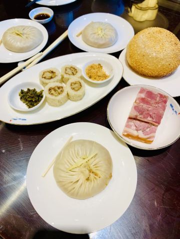 Yolanda_zy非常不错的早茶店。入住迎宾馆,通常都会赶早到这来喝早茶,听了前台介绍,大早6:30就赶来排队了,平日7点开门,估计是节假日原因,6:30直接排着队进来了,没有等候到7点开门。不过只要晚一些,就要在门口排上队了,8点出头出来,门口已经排满了人。 这家网红早茶店味道还真棒,最近几天试过外面的茶社点心,远不及这里。选了一些网红必定,都是满意的,就是上得太快,一定要趁热吃,凉了会差一些。碧绿的翡翠烧卖,全荠菜馅,油油香香,味甜的口感,很不错。千层糕奶香味十足。蟹粉汤包正时季节,薄薄的皮子下,特制的汤汁非常鲜美,品完汤汁再拌上醋姜,裹皮下肚,非常满足[调皮]再一碗酱油虾籽面,喝点面汤非常爽口,面里超多虾籽[强]配上一份崤肉,品质很好,肉很瘦且回味香。虾仁灌汤饺,弹牙虾仁搭配猪肉,味甜的口味,与蟹粉汤包完全两种口感。次饭团也很精致,切成小口份,搭配的咸菜和蘸酱很提鲜。豆沙包馅料细腻,甜度适中;大麻球,外脆里糯,超香;还有一个果粉当甜点很不错,有点儿时的奶膏香[调皮]道道精致,味道恰好。品种又多,每天换着吃也不错。