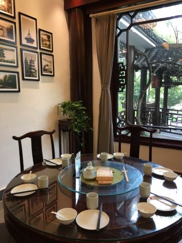行走地球的猫住扬州迎宾馆,不用出园子,步行几分钟就到趣园茶社,黄豆脚圈软糯入味,满满的胶原蛋白;淮扬软兜食材新鲜,味道浓郁,分量十足;清炒河虾仁食材新鲜,弹性十足,能吃出河虾本身的鲜美,好大一份,感觉好奢侈!唯一不足的是菊花脑,虽然还是清香爽口,不过有些老了。当然这是我点菜的问题,菊花脑是农历三月的时令菜,现在已经过季了。其实趣园最推荐的是早茶。 趣园茶社吃早茶,点心都是可以一件一件点的,所以分量比较好掌握,空心麻球似乎每桌必点,好大一个,外皮香脆,甜度适合,就是厚度还不够均匀,比起二十多年前在深圳上海宾馆吃到的麻球还略逊一筹;虾籽馄饨的汤头鲜美,肉馅有弹性,不过馄饨不太经放,吃得稍慢,过了几分钟馄饨皮就不那么爽滑了;翡翠烧卖的馅料是荠菜和火腿,调味鲜甜适中,就是油有点多;五丁包的馅料很丰富,笋丁和海参丁不错,但是其中的肉丁口感干硬,不算惊艳;豆沙包绵密细腻;灌汤蒸饺鲜甜,汤不太多,馅料是无锡小笼的口味;虾籽卤冬菇配白粥不错,就是量真的太大,小份跟人家的例份一样;千层油糕,名字叫油糕,却不是很油,味道清甜,作为早餐的收尾很完美。 再说说环境,趣园除了主楼的大厅和包房以外还有很多临水的亭台楼榭,都是可以用餐的包间,景致古雅宜人,是上海不容易见到的。