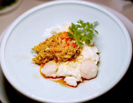 扬州宴,期待的淮扬菜餐厅,菜品依次为瘦西湖风味小菜、盐水老鹅头、剑南牛肉汤、芙蓉炒虾蟹、金蒜马鞍桥、肉汁烧芋头、冬瓜燉咸鹅、香肠蒸黄鱼、笼蒸大闸蟹,美味,很美。