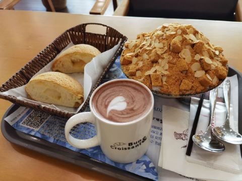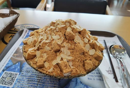 为了吃可以专程去一趟的地方是延吉,到延吉吃美食,很多人会给你推荐劳顶笨咖啡。打糕味道的绵绵冰,刚吃一口就频频点头,真的不错可以列入必吃菜单。