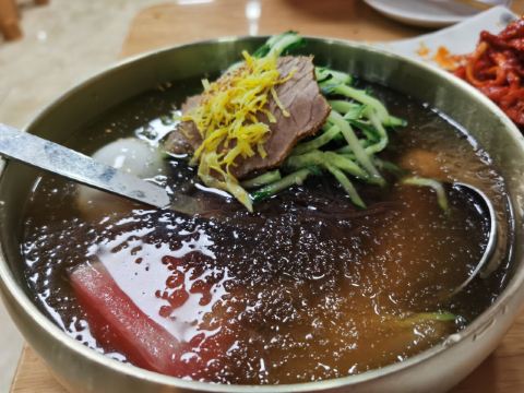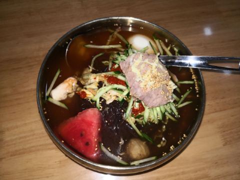普通冷面,锅包肉,打糕,板筋,拌明太鱼丝,拌桔梗,玉米温面,米肠,芝士米肠,狗肉汤,烤鲅鱼,冰川啤酒,五彩拉皮,辣炒海兔,酱牛肉,清水牛肚