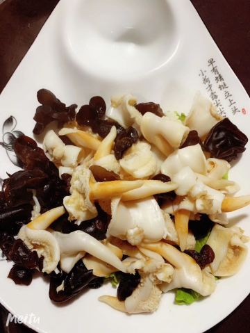 萝卜丝鲜虾丸汤,香葱鸡蛋干,江南油焖笋,小米高汤黄肥牛,海肠捞饭,葱烧海蛎子,香草棒棒鸡,酱爆巴蛸,三鲜饺子,鱼锅片片,清炒西兰话,砂锅碟鱼头,炒鸡泡饼,网红麻辣海鲜一锅出