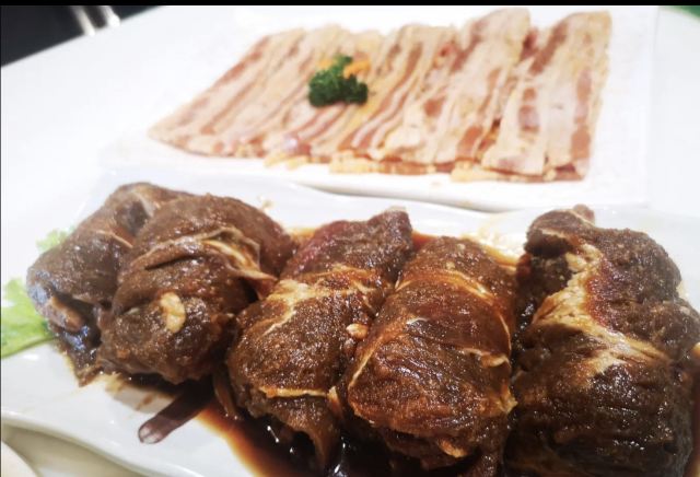 拌花菜,冷面,小料,秘制牛五花,调味牛肉,石锅拌饭,海鲜饼,美肥,肉筋,小肠,棒鱼,大酱汤,花菜,烤美肥,烤肉,珍珠饼,辣白菜炒饭,海鲜饼整个蛎蝗,鲜五花肉,打糕,鱿鱼嘴,很多……,秘制肥牛,拌菜,板筋,上脑,牛五花肉,彩糕,鸡脆骨,五花肉
