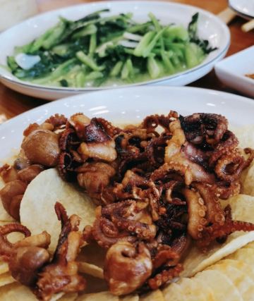 来鲅鱼圈了吃饭一定是看点评推荐。这家餐厅就在 红运饭店旁边,卫生挺好,门口停车不收钱,提示注意安全。鲍鱼不错。,扇贝是碳烤的,雪衣豆沙是东北名菜,比较费事,但是很好吃,不腻,鲅鱼 蒸饺必须吃,还有虾爬子。我比较喜欢鱿鱼。就怕 吃犯了痛风