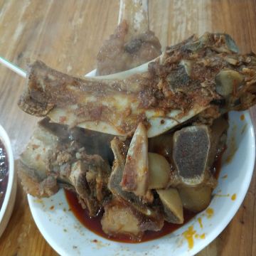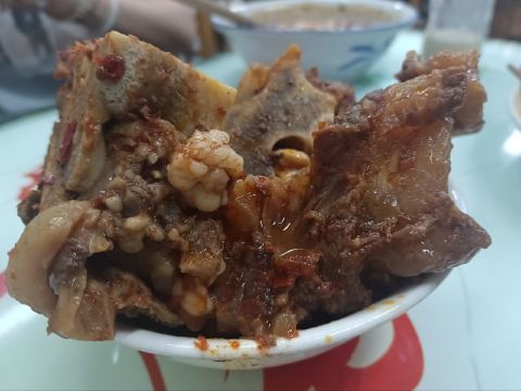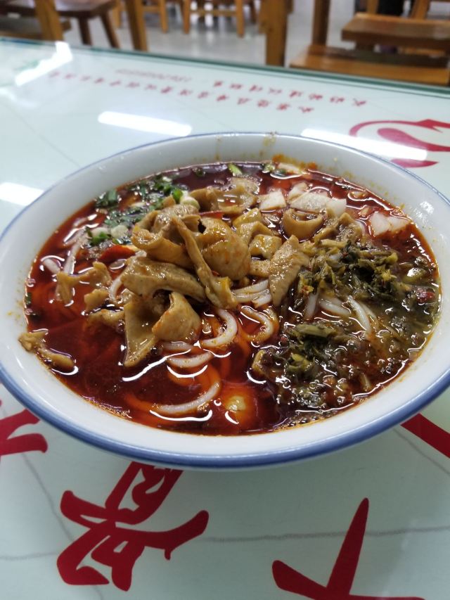 很多时候,惊喜都是在不经意间获得的。鹰潭市区不大,搜美食时看到张记牛骨粉,溜达过去解决晚饭。 开在社区边的店铺,环境谈不上好,老板招呼得很热情。牛骨粉分大小,区别不在粉在牛骨的多少。看着普通的一碗粉,味道真的是出乎意料的好。