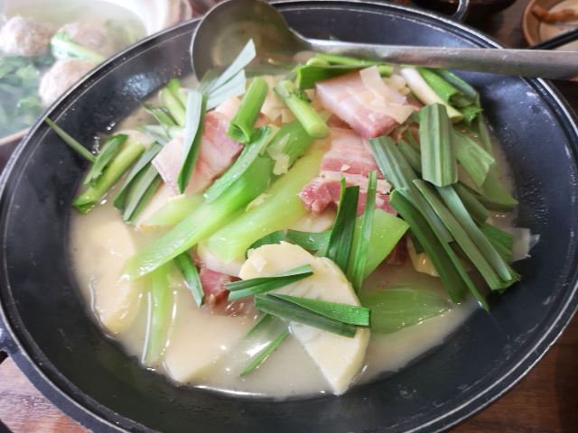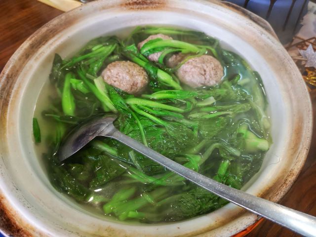 jane猫小喵南中粗菜馆在我们当地也是小有名气,地方不大好找,一直在洛涧村的南中山坳子里,导航地址还是蛮准的,七转八弯肯定能找到。 【环境】四面环山 空气清幽 房子侧面有一大片竹林,每当风起只听到竹叶沙沙声。 【装修】店内环境简约别致,原木桌椅,餐具古朴有特色,厨房外面开放式的点菜台可供客人点菜。 【停车场】点好菜等候时在门口溜达了一圈,发现这家土菜馆生意是真心好,门口的院子加上对面停车场居然停了不下于40辆车,居然还有上海人三四家人乘着一辆大巴来吃饭。 【招牌青菜狮子头】挺大一个,两人吃一个就够了,肥瘦相间,吃口还是蛮入味蛮鲜的。汤透鲜透鲜,比较清淡但不失鲜美,适合就餐前喝这碗汤养养胃。 【红烧鸡爪】软糯,满满的胶原蛋白;【香芋煲】软软糯糯的口感夹带着肉香,咬上一口特满足;【南瓜】香甜软糯的口感,爸爸说吃着像日本南瓜,这样说来店家选用的是好品质的。 【山芋粉】特别喜欢这种厚切的红薯粉,任何农家乐都要点这道菜,细腻又不失韧劲。在当地也是一道特色素菜。 【鱿鱼】看品相闻香味,就让人口水欲滴,鱿鱼两烧(蒜蓉鱿鱼+剁椒鱿鱼】,吃之前拌上一拌,吃完鲜香的蒜蓉口味,再吃微辣口味的剁椒,鱿鱼前期处理到位,肉质Q弹鲜嫩,很好吃。 【腌笃鲜】春暖花开,正是春笋竞相破土。层层剥开,扒掉紧包的笋衣。质白丰腴,与独家腌制五花咸肉+大蒜茉一起烹饪,让味道步步为营。 果然,这山间的一味朴素,却是不能遗漏的“馋”。 【清炒苋菜】时令蔬菜,清清爽爽,粉嫩鲜香。 【尖椒皮蛋】摆盘精致有颜值。鲜滑爽口的口感,非常下酒。 儿子生日,我们五人点了这10个菜,最后结算居然只有460,总之这家这么生意火爆的情况下,人均不是很贵。