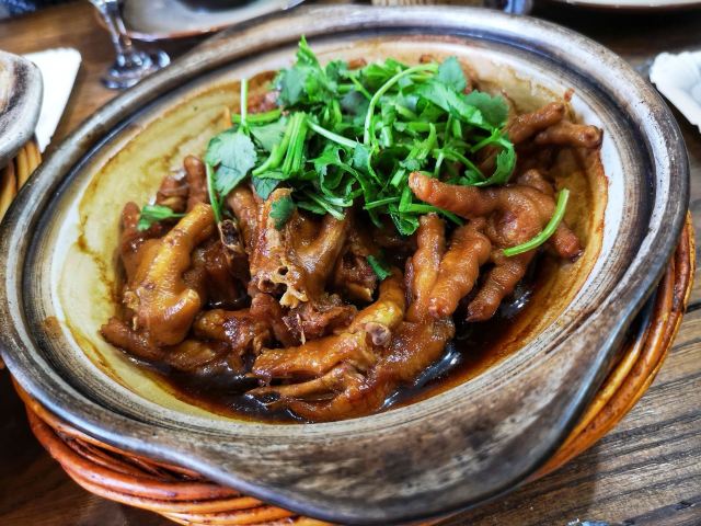 香糯鸡爪,大狮子头青菜汤,红烧香芋,黑米饼,豆腐煲,干焗鱼头,藕饼,腌笃鲜,乌米饭,香椿炒鸡蛋,鸡爪,糖芋头,尖椒豆腐
