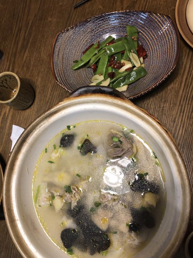 NAN ZHONG CU CAI GUAN南中粗菜馆在我们当地也是小有名气,地方不大好找,一直在洛涧村的南中山坳子里,导航地址还是蛮准的,七转八弯肯定能找到。 【环境】四面环山 空气清幽 房子侧面有一大片竹林,每当风起只听到竹叶沙沙声。 【装修】店内环境简约别致,原木桌椅,餐具古朴有特色,厨房外面开放式的点菜台可供客人点菜。 【停车场】点好菜等候时在门口溜达了一圈,发现这家土菜馆生意是真心好,门口的院子加上对面停车场居然停了不下于40辆车,居然还有上海人三四家人乘着一辆大巴来吃饭。 【招牌青菜狮子头】挺大一个,两人吃一个就够了,肥瘦相间,吃口还是蛮入味蛮鲜的。汤透鲜透鲜,比较清淡但不失鲜美,适合就餐前喝这碗汤养养胃。 【红烧鸡爪】软糯,满满的胶原蛋白;【香芋煲】软软糯糯的口感夹带着肉香,咬上一口特满足;【南瓜】香甜软糯的口感,爸爸说吃着像日本南瓜,这样说来店家选用的是好品质的。 【山芋粉】特别喜欢这种厚切的红薯粉,任何农家乐都要点这道菜,细腻又不失韧劲。在当地也是一道特色素菜。 【鱿鱼】看品相闻香味,就让人口水欲滴,鱿鱼两烧(蒜蓉鱿鱼+剁椒鱿鱼】,吃之前拌上一拌,吃完鲜香的蒜蓉口味,再吃微辣口味的剁椒,鱿鱼前期处理到位,肉质Q弹鲜嫩,很好吃。 【腌笃鲜】春暖花开,正是春笋竞相破土。层层剥开,扒掉紧包的笋衣。质白丰腴,与独家腌制五花咸肉+大蒜茉一起烹饪,让味道步步为营。 果然,这山间的一味朴素,却是不能遗漏的“馋”。 【清炒苋菜】时令蔬菜,清清爽爽,粉嫩鲜香。 【尖椒皮蛋】摆盘精致有颜值。鲜滑爽口的口感,非常下酒。 儿子生日,我们五人点了这10个菜,最后结算居然只有460,总之这家这么生意火爆的情况下,人均不是很贵。