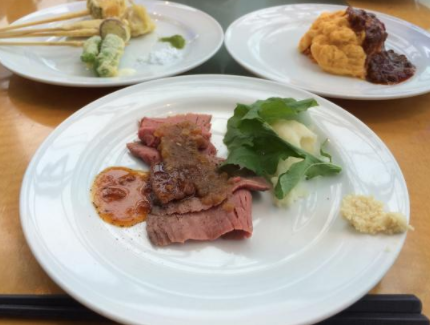 环境简洁典雅的自助餐厅。落地玻璃窗的设计让客人能欣赏到横滨港湾的风景,晚上的时候对岸的摩天轮颜色七彩变换,非常梦幻。在这里能品尝到各国美食,不时还会有现场钢琴演奏增添浪漫气氛。