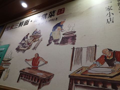 三鲜面,炒粉干,粉皮面,炒年糕,葱油蛏子,红烧小黄鱼,酸辣土豆丝,大排面,鲜炒牛肉面,馄饨