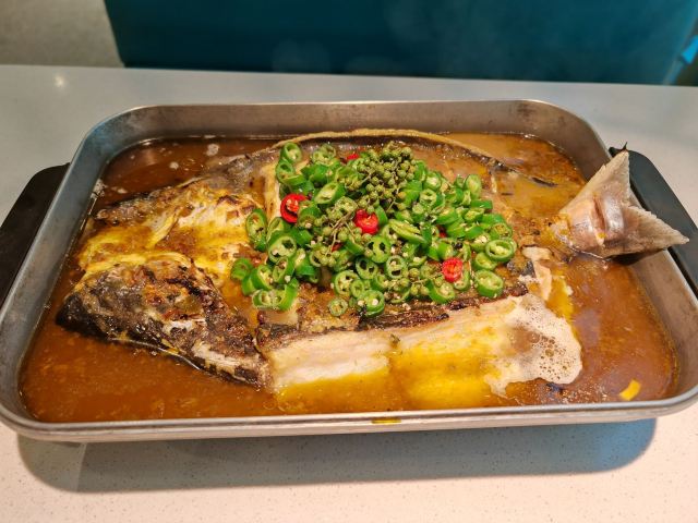 差不多餐馆一开张就进门来坐着了,店员也是积极地招呼。烤鱼不用挑,就吃半天妖,这句顺口溜确认很容易得人心。二话不说,直接点招牌的青花椒烤鱼,在店员的引荐下,回鱼和凌波鱼之间选择了更为肥嫩的凌波鱼,果然没有失望,肥嫩可口,鱼刺也不太多,青花椒一抹开,一分钟就入味了。2元前自助的饮料米饭无限量。