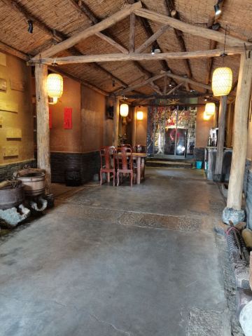 外面环境不起眼,进到饭店里别有洞天。装修风格非常接地气。全是民族风