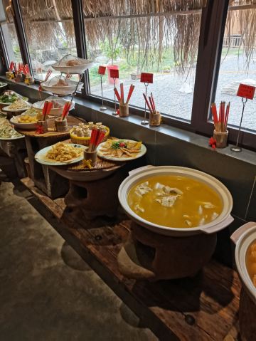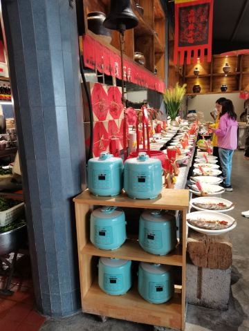名利辣子鸡,西施烧饼,鸡蛋汤,红烧鮥鱼,煎饼卷大葱,蒜泥鸡蛋,风味茄子,豆花铁板烧,牛肉,凉粉