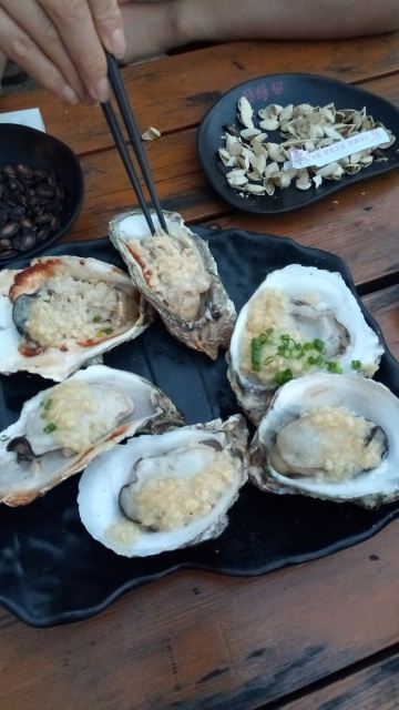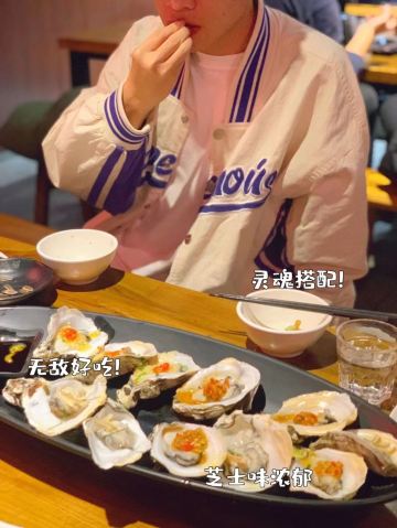来湛江 不吃生蚝怎么行? 于是乎 记忆里 从下榻的那刻起 每一餐都离不开生蚝 今天打卡的这家可有来头 上过央视 可了不得 店铺刚好就在酒店楼下 名字叫做|烧蠔帮·湛江生蚝(金沙湾店)^ 豪气的排场800米开外就看到了 因为过了饭点 等位的人不算多 听闻饭点的时候来 可是要等好一会儿的 他家生蚝是主打 各种做法 不过我对生蚝没有执念 感觉也就是那个味道 倒是烧烤 很配这个季节 再来杯快乐水 哇咔咔 Nice