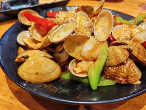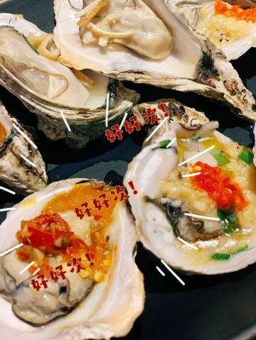 本帮蒜香烧蚝,湿辣牛肉,烤茄子,干炒河粉,万那汁烤海虾,海味原只生蚝,法式万那汁烤蚝,锡纸金针菇,串烧鸡腿肉,青芥芝士烤蚝,冰镇酸梅汤,榴莲芝士烤蚝,黑蒜烤生蚝,生蚝