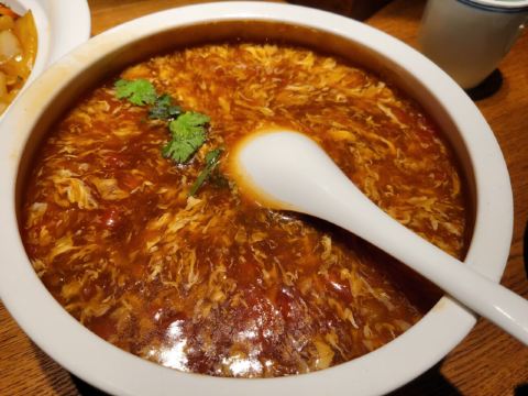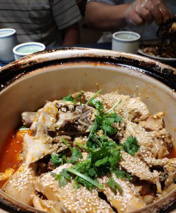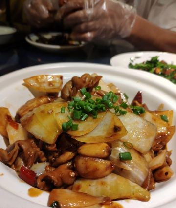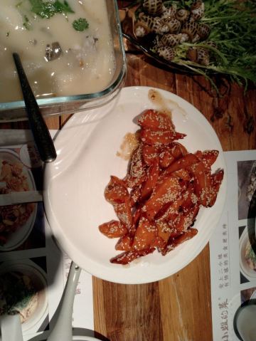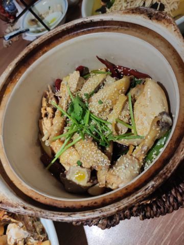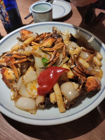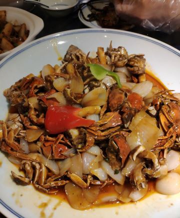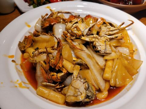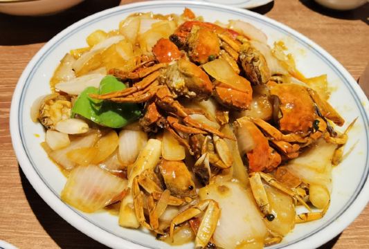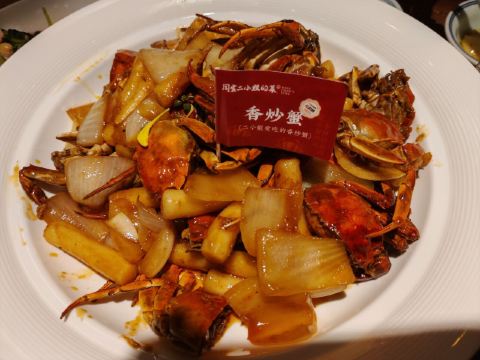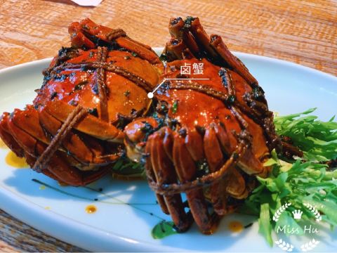 Helen晓世界《晓世界》国内环游篇📍江苏 这家店的位置还挺好的,就在西津渡景区的核心位置,停车和游玩都挺方便,服务态度很热情周到,算是个比较适合游客用餐的选择。 菜品方面,招牌的|二小姐最爱的六月黄(香炒蟹)^还比较推荐,加了麻椒油之后,要比一般的年糕炒蟹更有滋味。镇江特色的|肴肉^也属于必点了。|陈年花雕熟醉六月黄^用的原料不错,蟹黄饱满,只是可惜不够入味,不知道是腌制时间不够,还是故意追求平淡一些的口味。 其他网上比较推荐的菜品中,|砂锅凤爪鱼头^和|秘制糟花螺^也还可以。|什锦锅盖面^做主食也还不错,不是很咸。 至于|有故事的椒麻鸡^,就很不推荐了,鸡肉很老,肉质发柴,应该也不属于本地特色,就没必要在这里吃了。 菜品都比较周到的设置了小份中份大份,可惜就算是小份菜量也不小,我们四个人都点的小份,还有几样菜根本吃不下,如果是两个人的话,还真的不太好点菜。