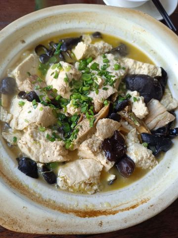 出差,隨便找個店解決午飯。 點了河豚和河蚌鹹肉豆腐煲。 河豚是暗紋豚,個頭不少。口感一般。河蚌煲缺乏鮮味兒,河蚌是煮熟的,直接加進去的。 中午顧客盈門,菜量很大。