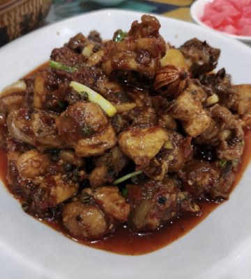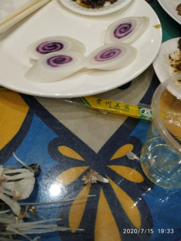 带皮牛肉,米糕,辣子鸡,酸汤江团鱼,野菜鸡蛋饼,贵州辣子鸡,蒜泥竹叶菜,黄果树,冰镇酸梅汤,瀑布野生小鱼,黄焖鸡,酸汤鱼,龙须菜炒腊肉,布依老腊肉,自制酥肉,芹菜牛肉,野生小鱼,野菌肉丝汤